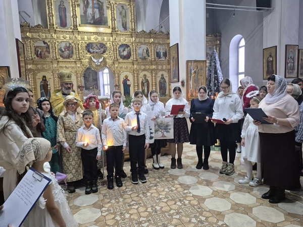 Воспитанники воскресной школы поздравили прихожан с праздником Рождества Христова