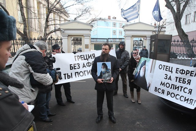 Сегодня православные Москвы провели пикет вблизи посольства Греции в знак протеста против ареста отца Ефрема.
