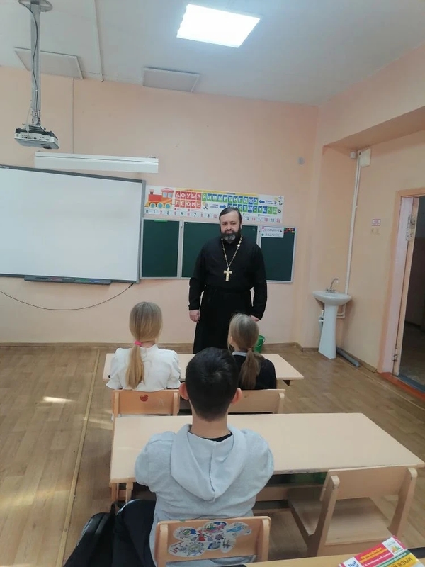 16, 18, 20 февраля благочинный Добринского ЦО, настоятель Никольского храма п. Добринка протоиерей Александр Адоньев, клирик храма иерей Михаил Шершнев, помощник благочинного по религиозному образованию Макашова А.С. посетили школы №1, №2 в п. Добринка, в п. Петровский и ТУ п. Добринка. Также священнослужители провели беседы с воспитанниками детских садов №2, №4, ГДО Лицей №1, ГДО МБОУ СОШ №2 п. Добринка, ГДО п. Петровский.