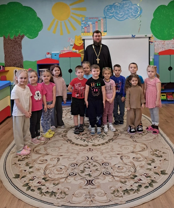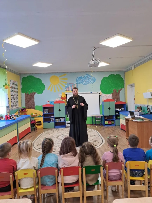 В рамках Недели наш детский сад посетил клирик Никольского храма п. Добринка иерей Михаил Шершнев. Отец Михаил провёл беседу о первопечатнике Иване Фёдорове и первой печатной книге.