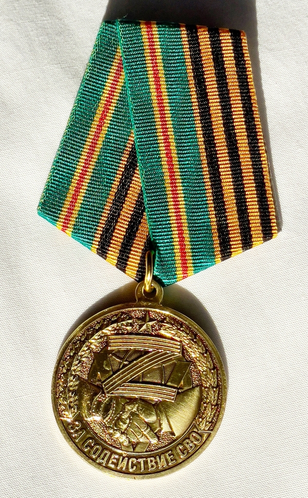 Медаль «За содействие СВО», учреждена Российским фондом помощи армии, вручается активным гражданам, организациям, общественным движениям и волонтёрам, оказывающим помощь участникам СВО.